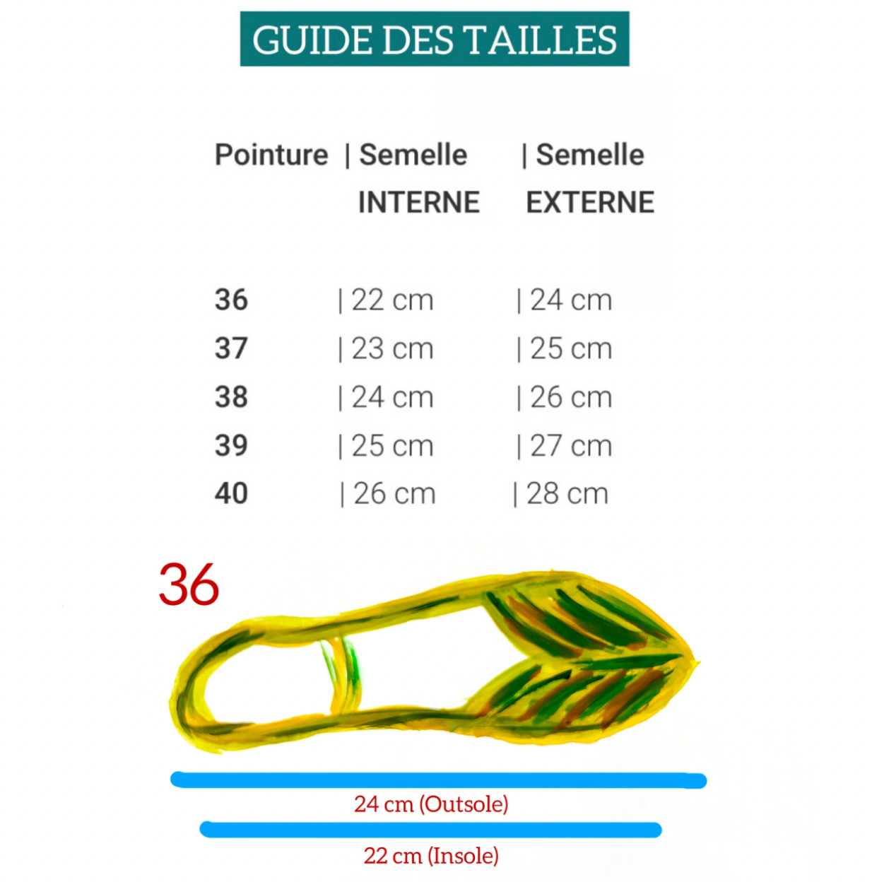 This short guide will help you select the best size according to your foot with an indication of the length of the Mexican sandal.