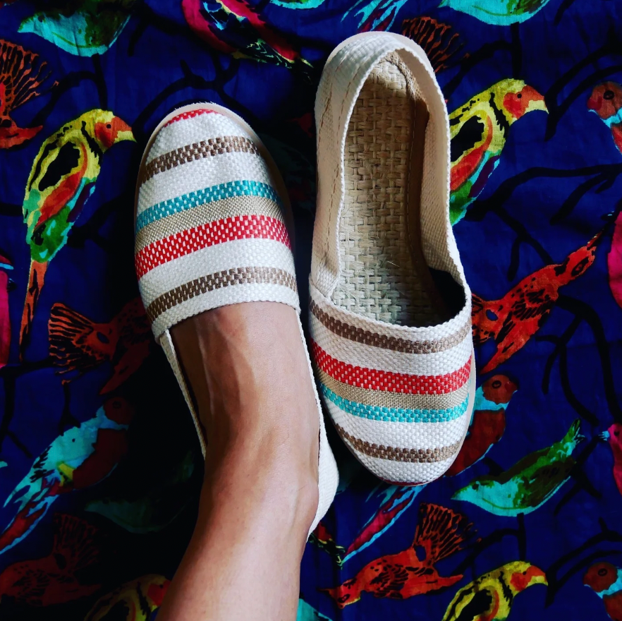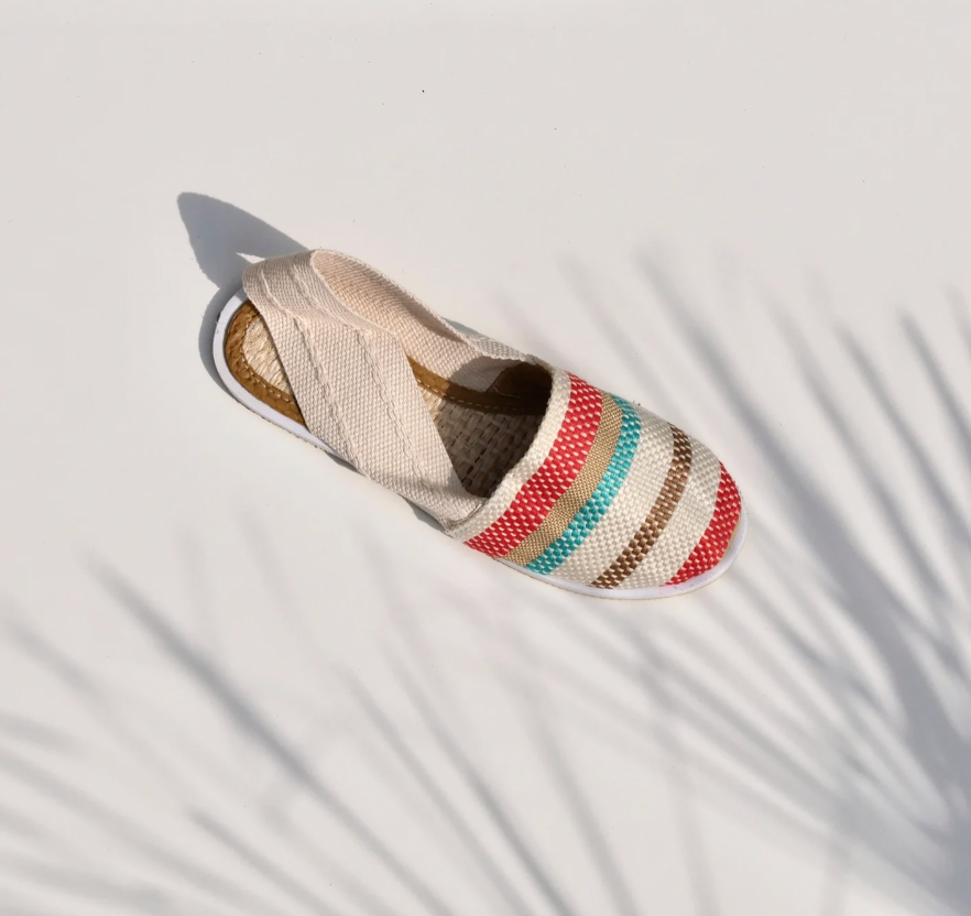 Chaque paire est entièrement réalisée à la main en Colombie par nos artisans, exclusivement pour Bambù Artisanat. Un modèle original, sans talon, disponible en série limitée, non reconduite.