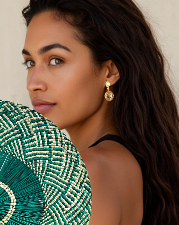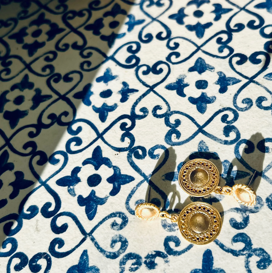Nos boucles dorées, inspirées des cultures indigènes précolombiennes sont artisanales et réalisées soigneusement à la main par nos artisans colombiens.
