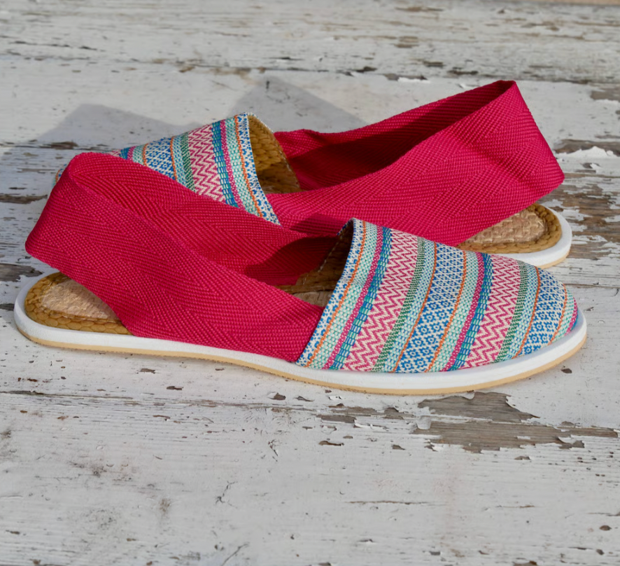 Élégantes et ultra légères, nos espadrilles se distinguent par leur design ouvert à l’arrière, maintenu par un bandeau confortable. Leur tissu aux motifs colombiens et leur fine semelle interne en paille offrent une allure à la fois chic et décontractée.