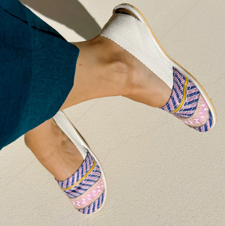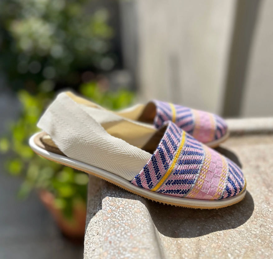 Chaque paire est entièrement réalisée à la main en Colombie par nos artisans, exclusivement pour Bambù Artisanat. Un modèle original, sans talon, disponible en série limitée, non reconduite.