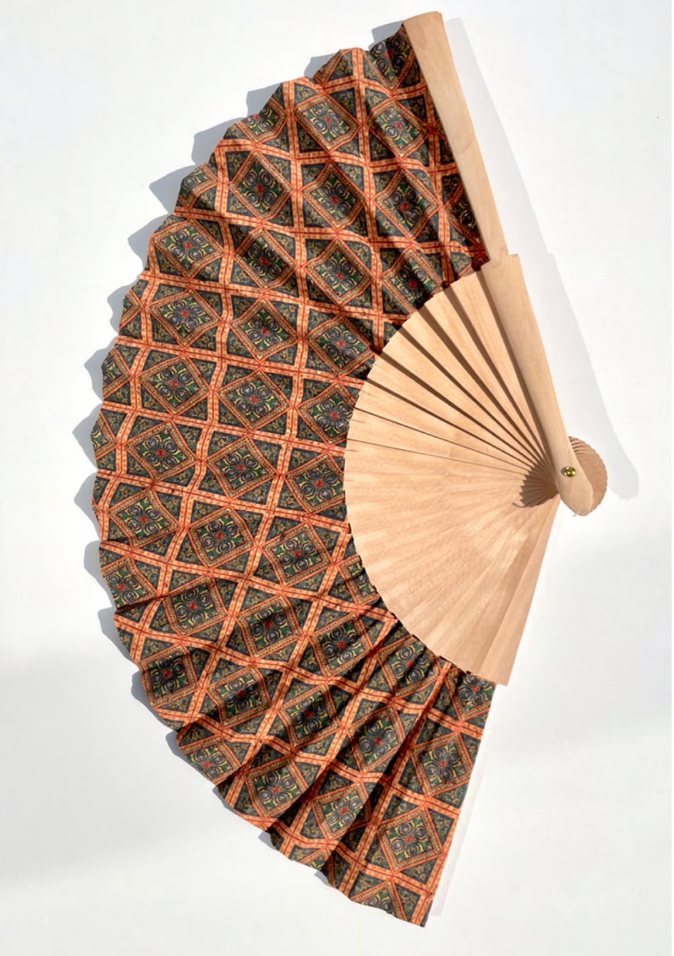 Un magnifique éventail pliable en bois et liège naturel de haute qualité, respectueux de l'environnement, très doux et durable.