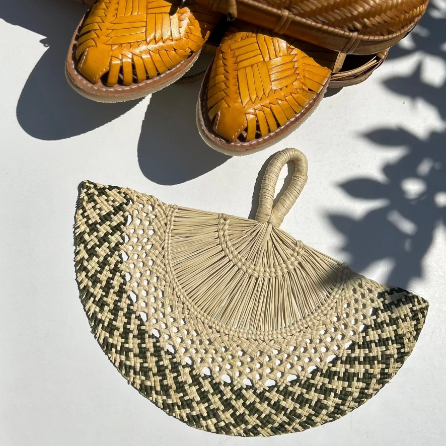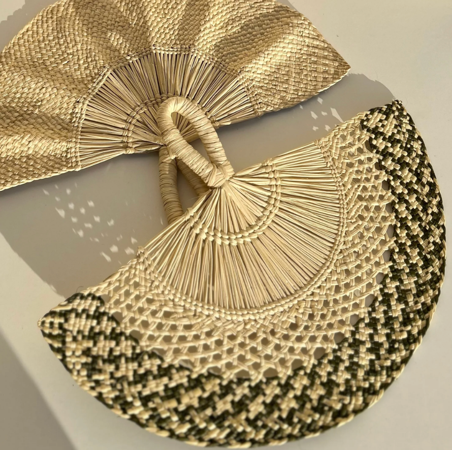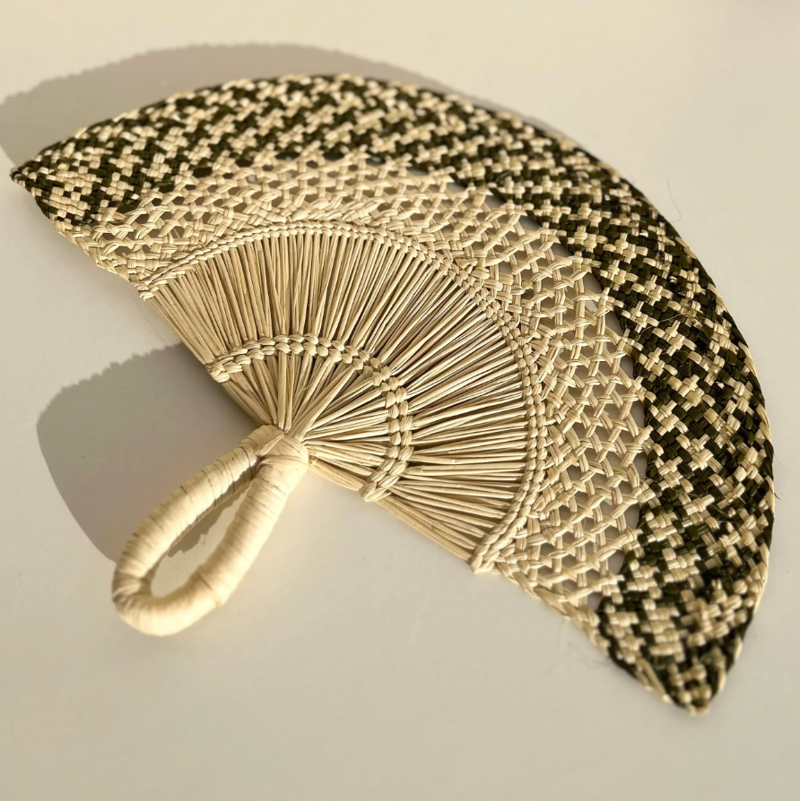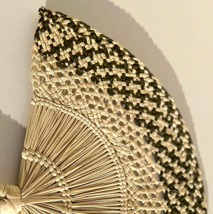 Éventail élégant vert olive en feuille de palmier Iraca.