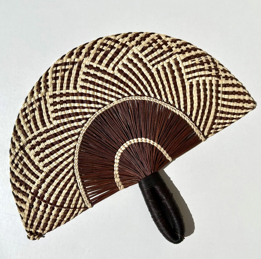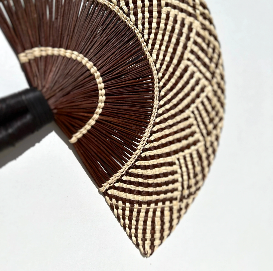 Eventail de qualité 100% naturel pouvant être proposé comme objet de décoration ou de collection, caractérisé par la finesse et la sophistication du travail fourni. La largeur de sa base est de 29 cm.