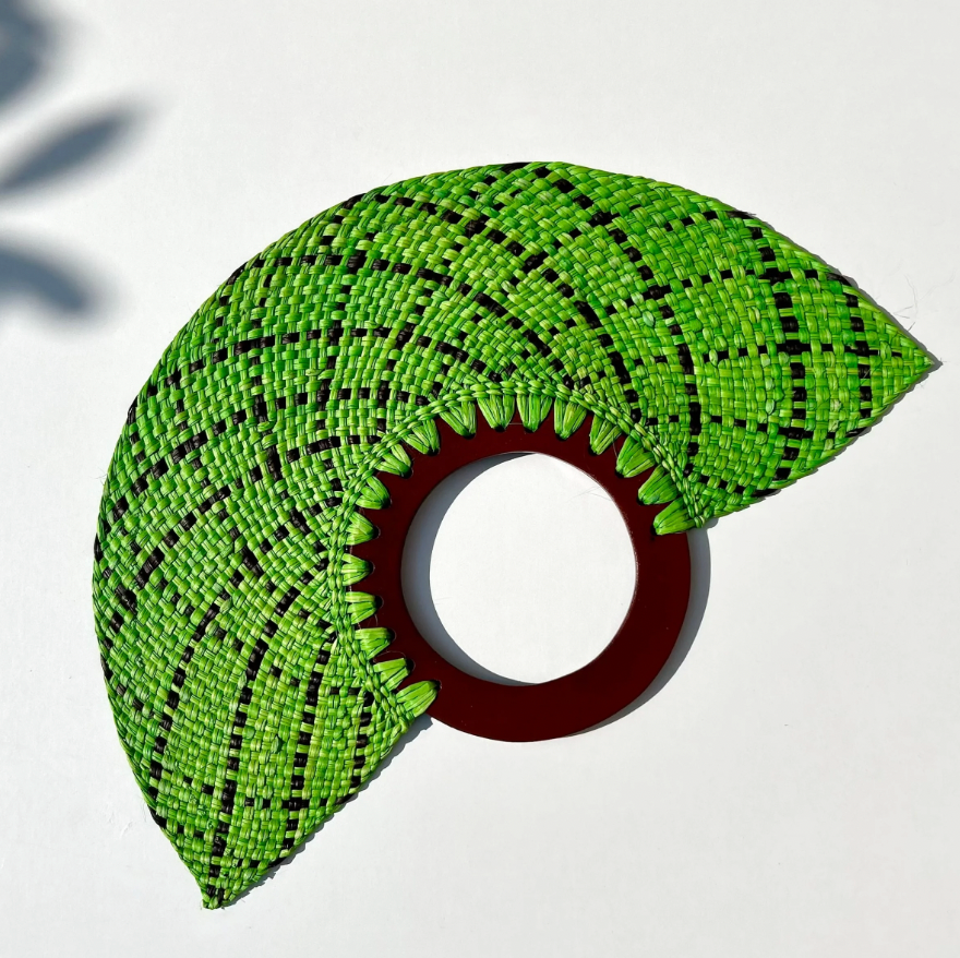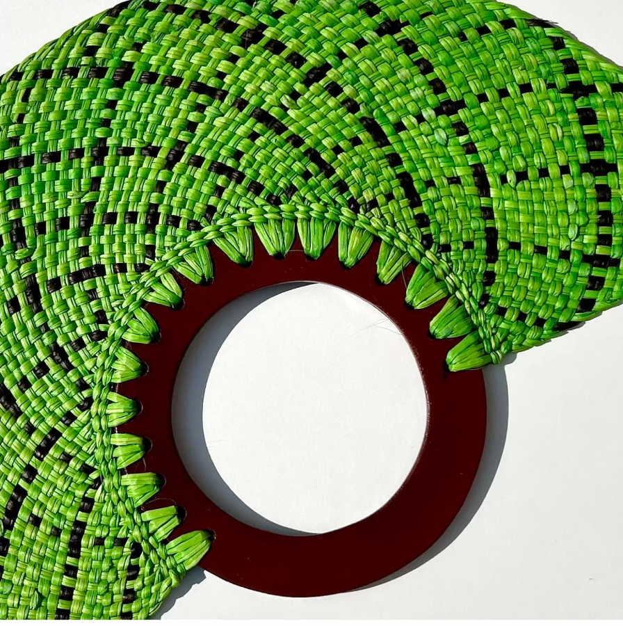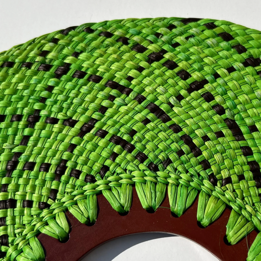 Éventail élégant vert en bois et feuille de palmier Iraca.