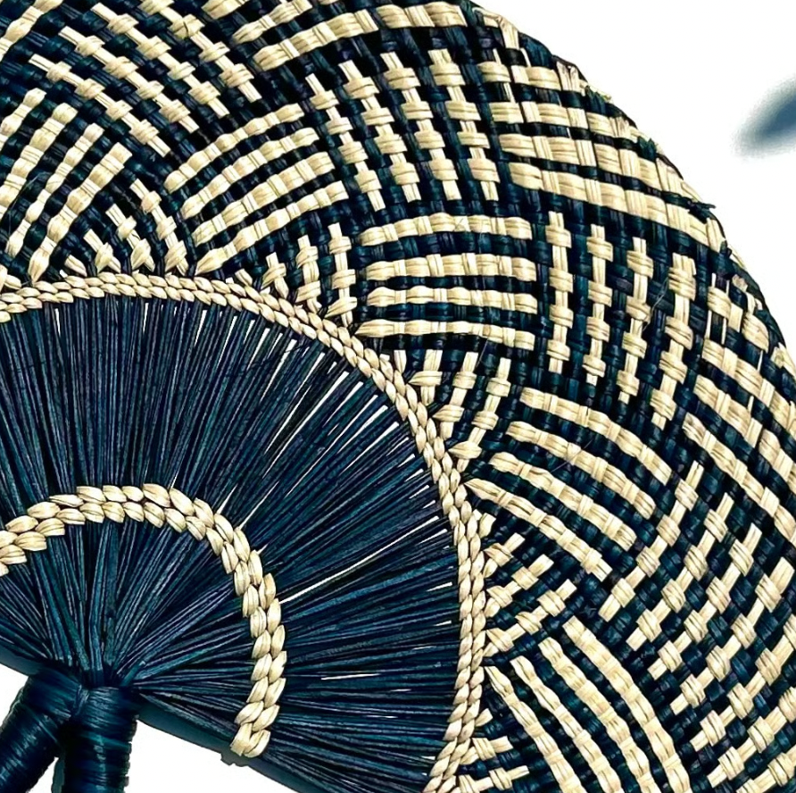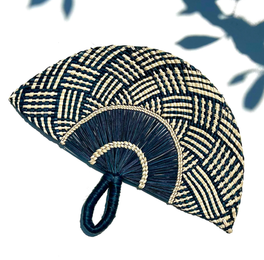 Eventail en ligne 100% naturel pouvant être proposé comme objet de décoration ou de collection, caractérisé par la finesse et la sophistication du travail fourni. La largeur de sa base est de 29 cm.
