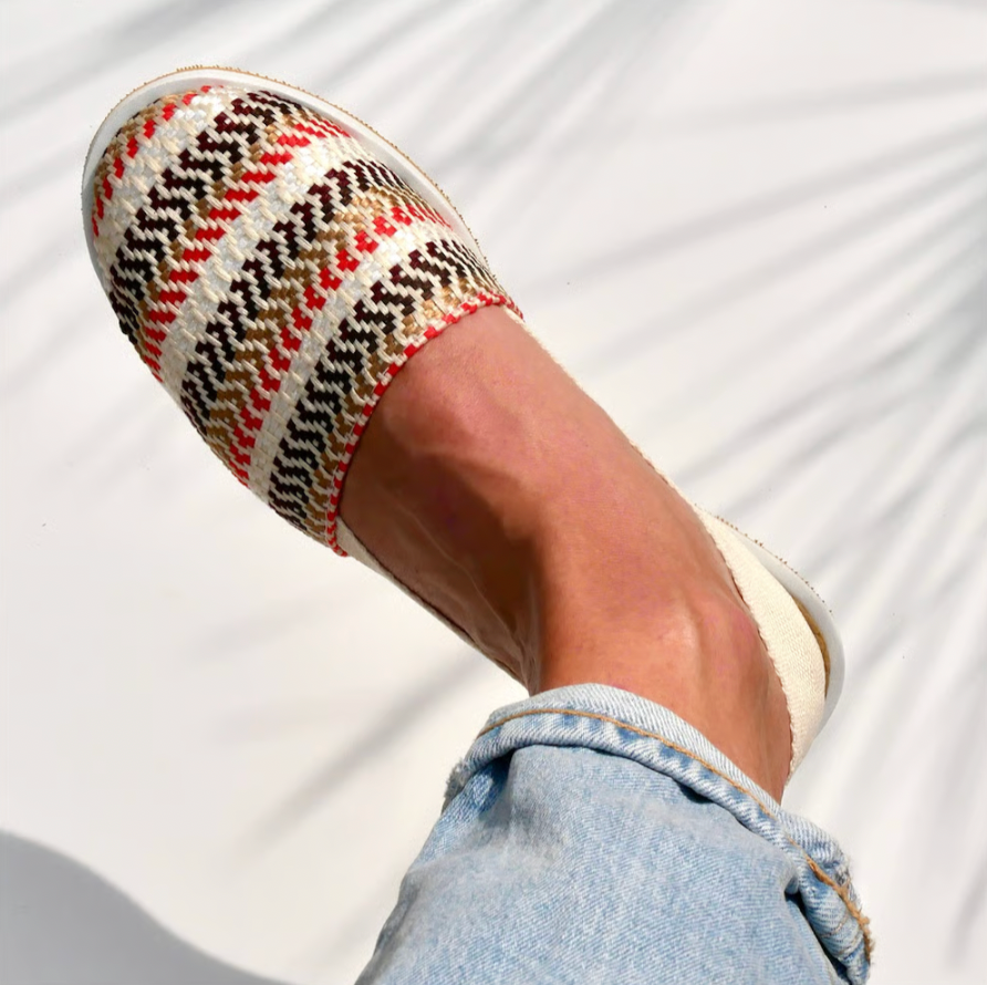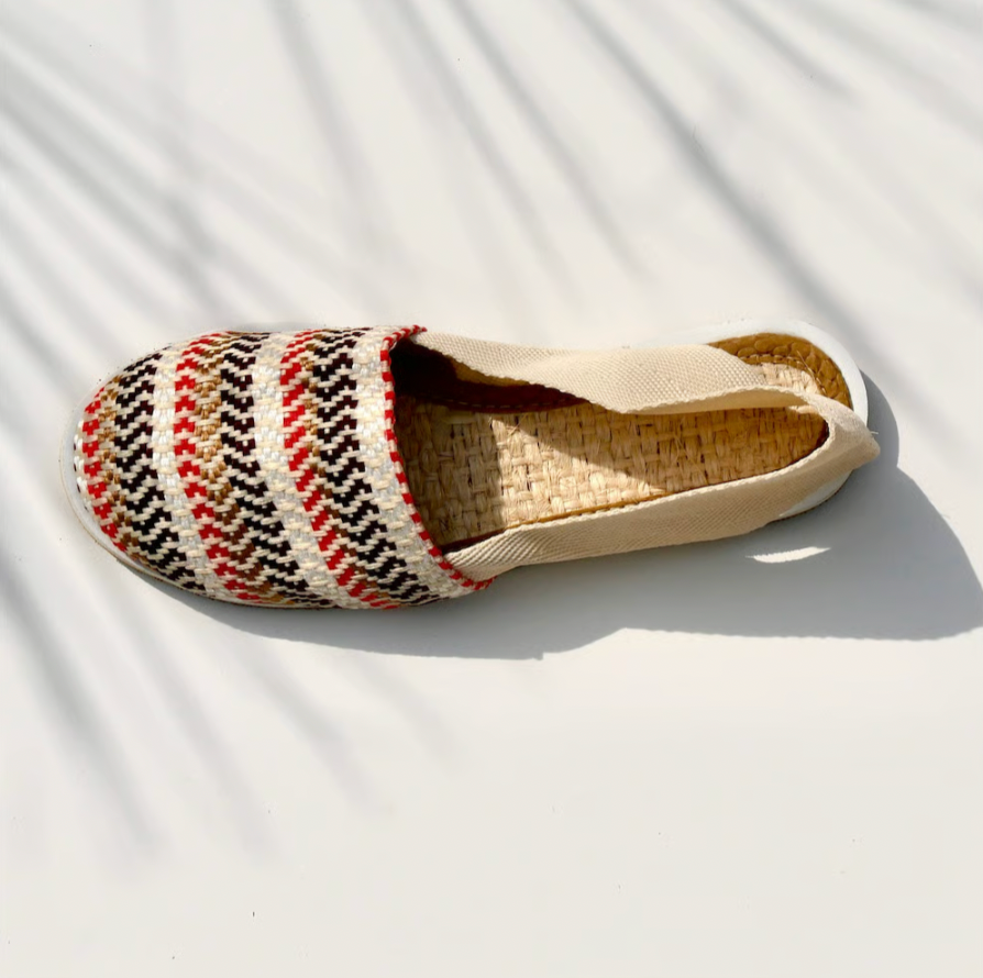 Chaque paire est entièrement réalisée à la main en Colombie par nos artisans, exclusivement pour Bambù Artisanat. Un modèle original, sans talon, disponible en série limitée, non reconduite.