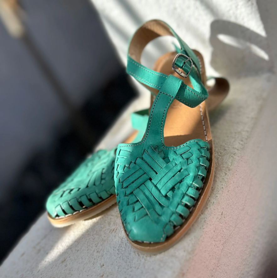 Sandale en cuir, tressée entièrement à la main selon une technique traditionnelle mexicaine transmise depuis des siècles.
