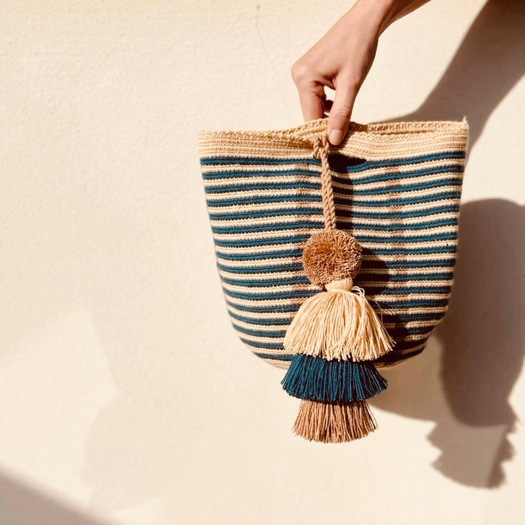 Mochila BELEN B en crochet réalisée à la main par nos artisans Wayuu situés au coeur du désert de la Guajira en Colombie.