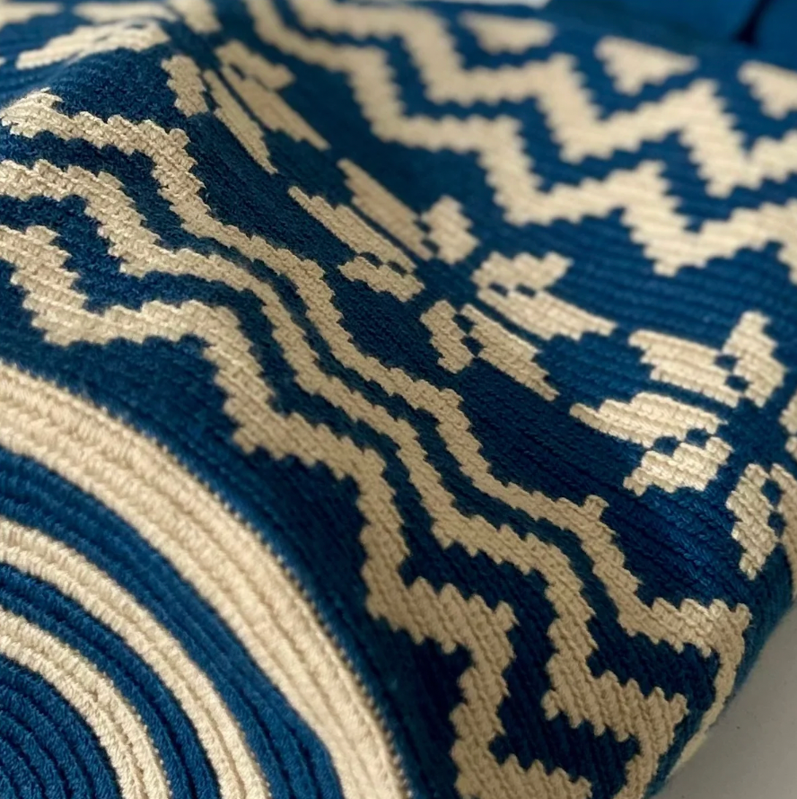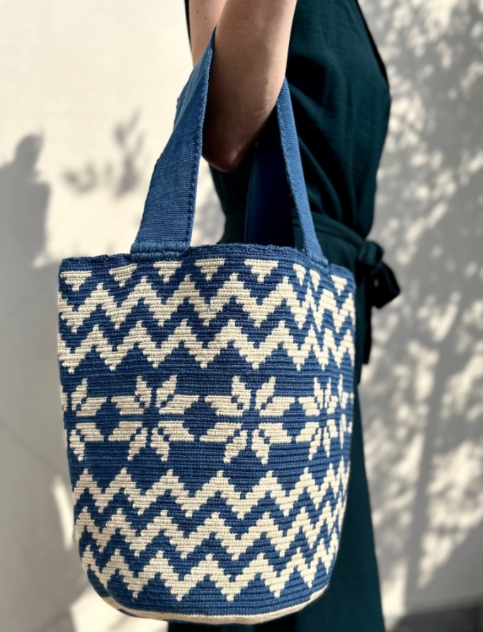 Découvrez la Mochila CARRIZAL, une pièce d’exception entièrement réalisée à la main par les femmes du peuple Wayuu, au cœur du désert de la Guajira, en Colombie.
