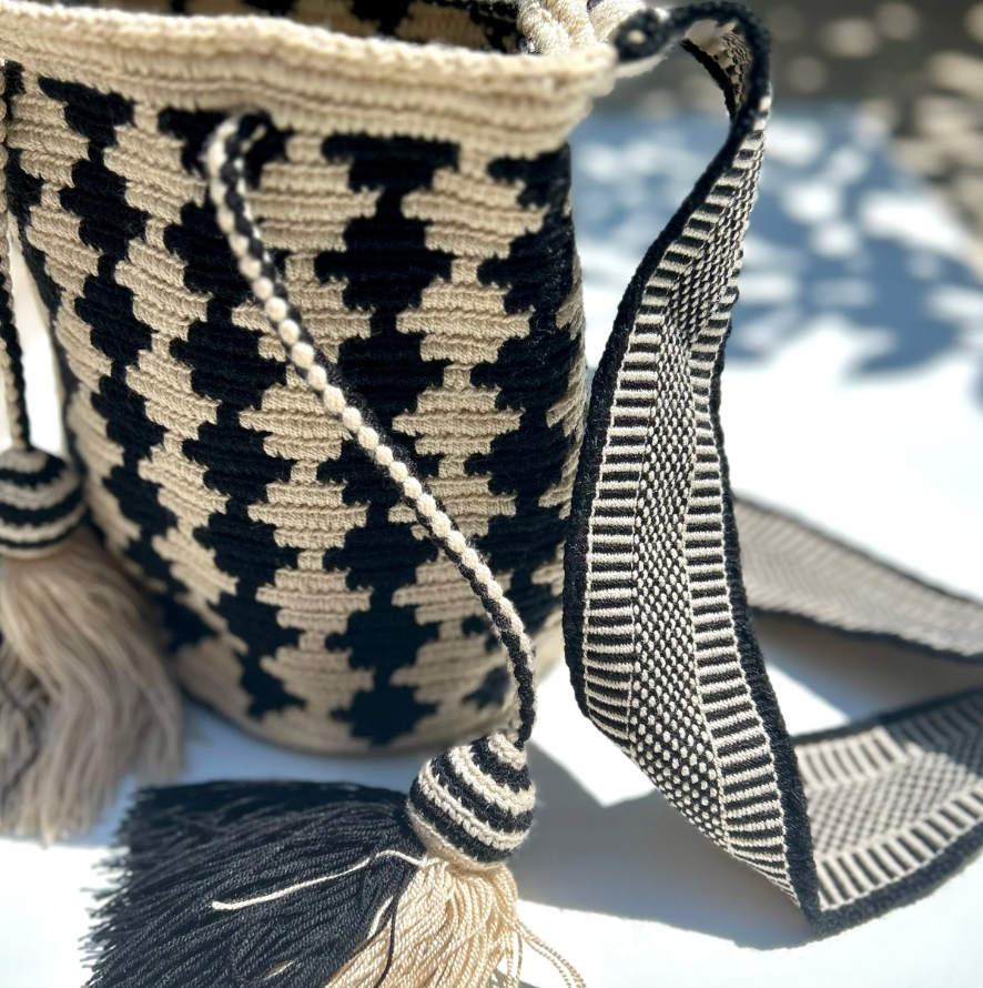 Le travail de chaque sac colombien est minutieux et dure plusieurs jours. Ce savoir-faire ancestral aux détails infinis (du pompon, à la anse, au contour & base de la mochila) perdure et permet à la communauté de soutenir la famille grâce aux ventes de ces accessoires uniques.