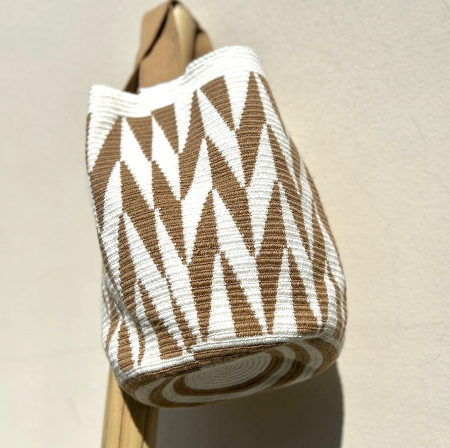 Découvrez la Mochila RAÍZ, une pièce d’exception entièrement réalisée à la main par les femmes du peuple Wayuu, au cœur du désert de la Guajira, en Colombie.