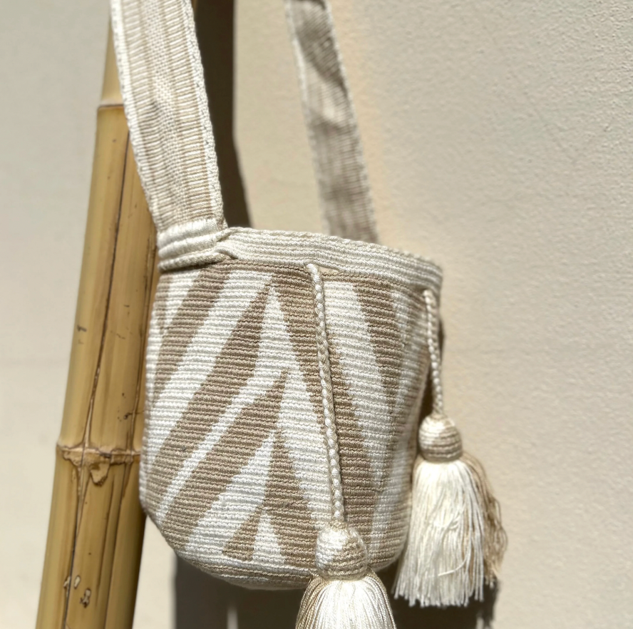 Mochila WAY en crochet réalisée à la main par nos artisans Wayuu situés au coeur du désert de la Guajira en Colombie.