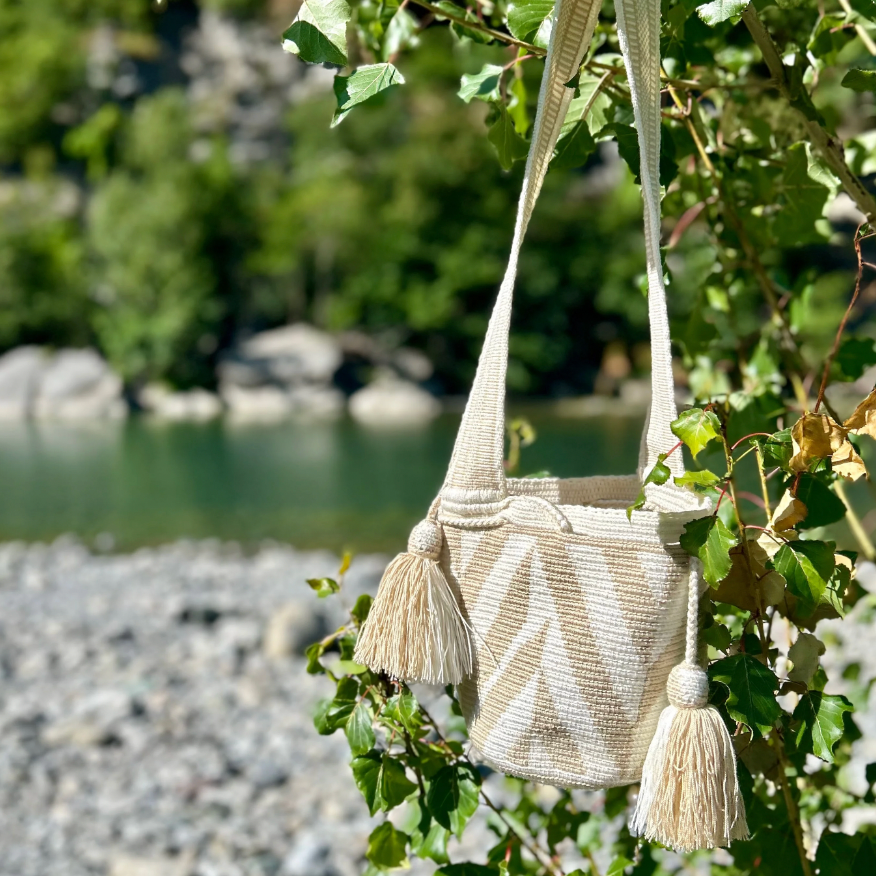 Modèle en édition limitée, réalisé en Colombie. Notre mochila beige en parfaite harmonie avec nos sandales mexicaines.