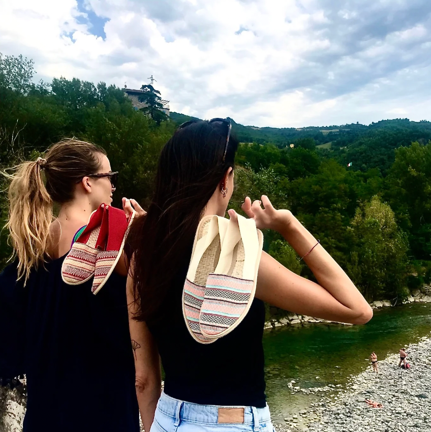 Chaque paire est entièrement réalisée à la main en Colombie par nos artisans, exclusivement pour Bambù Artisanat. Un modèle original, sans talon, disponible en série limitée, non reconduite.